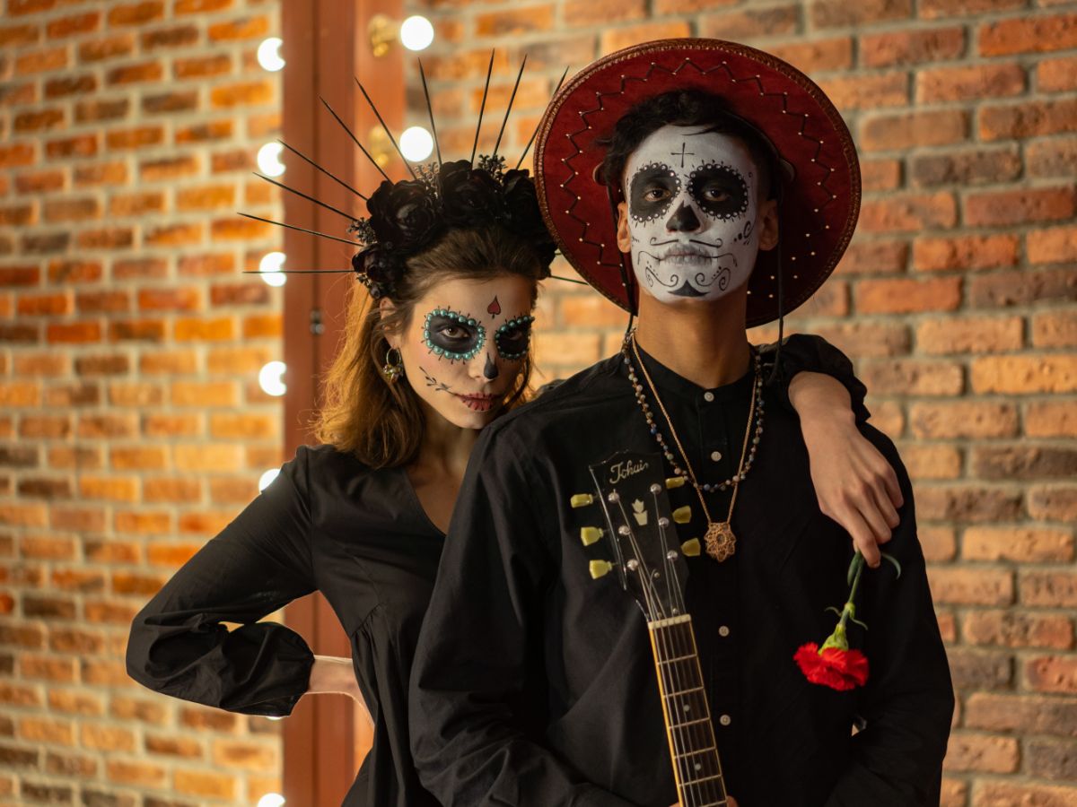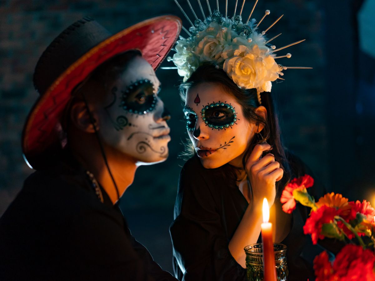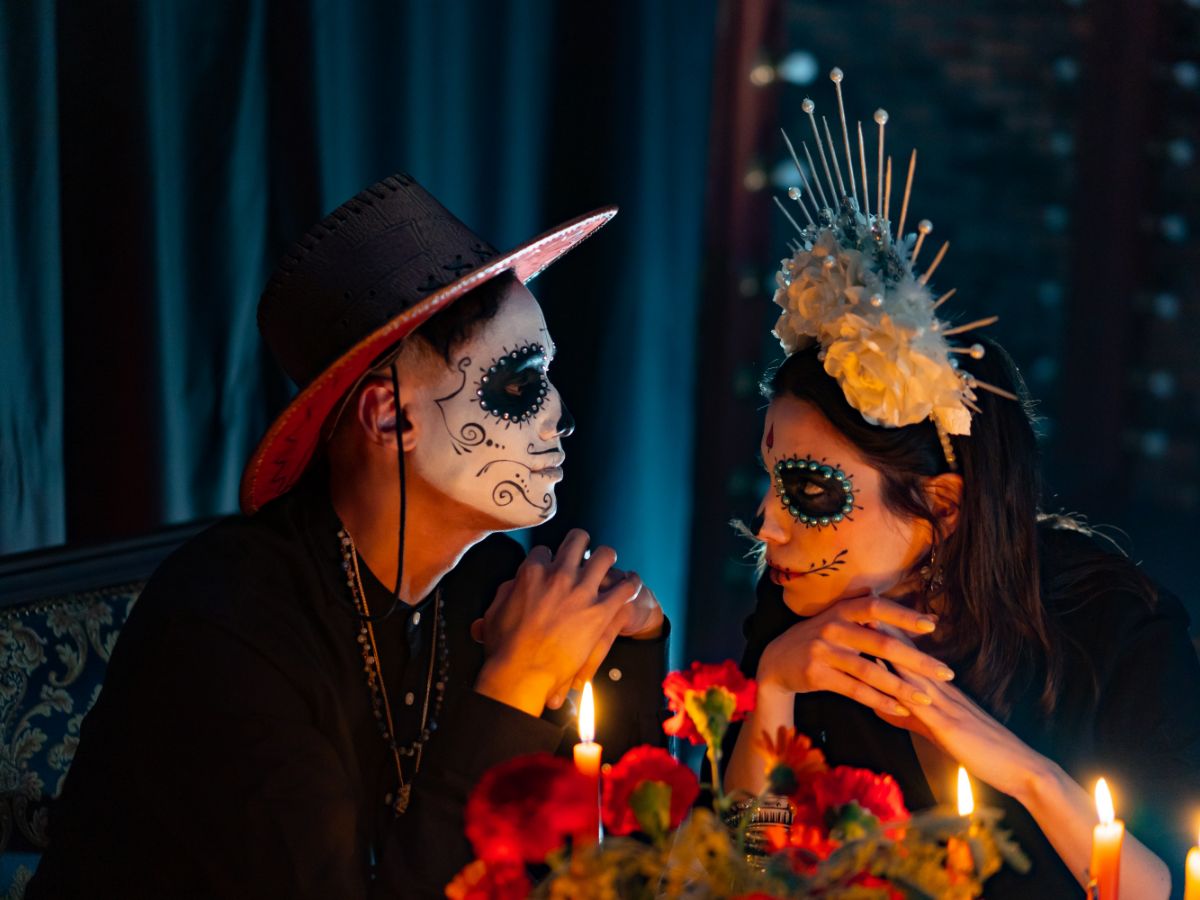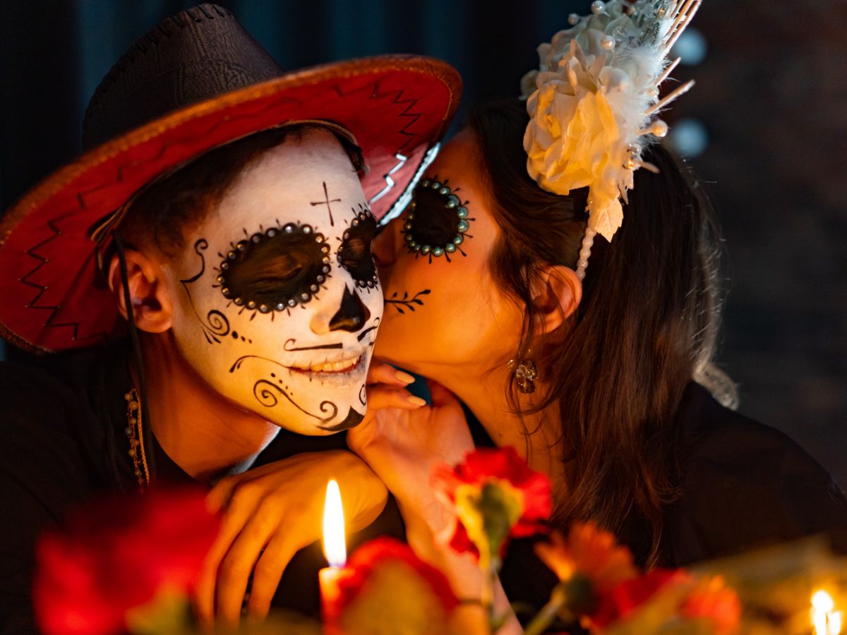 Día de Los Muertos is a holiday that involves family and friends gathering to pay respects and remember friends and family members who have died. This couple in love is not an exception.