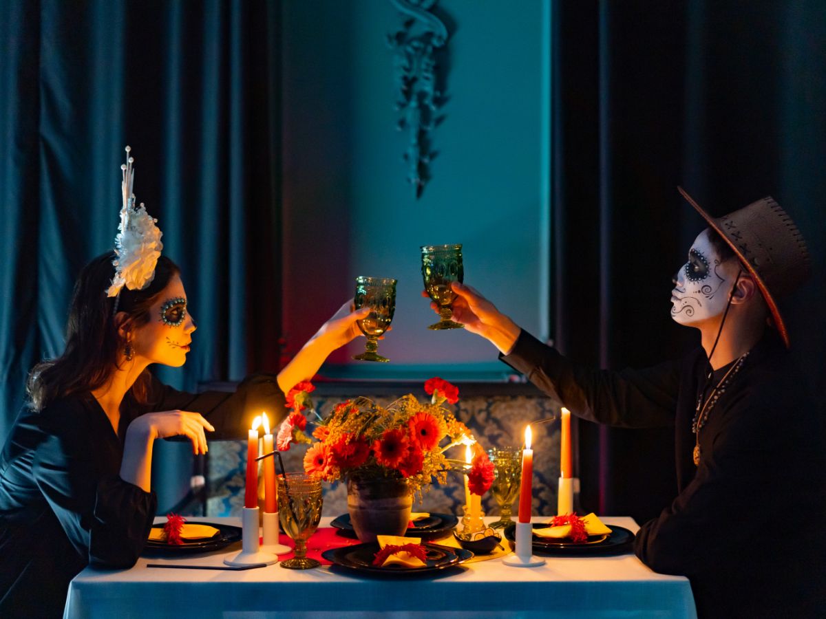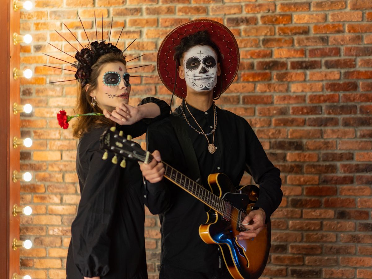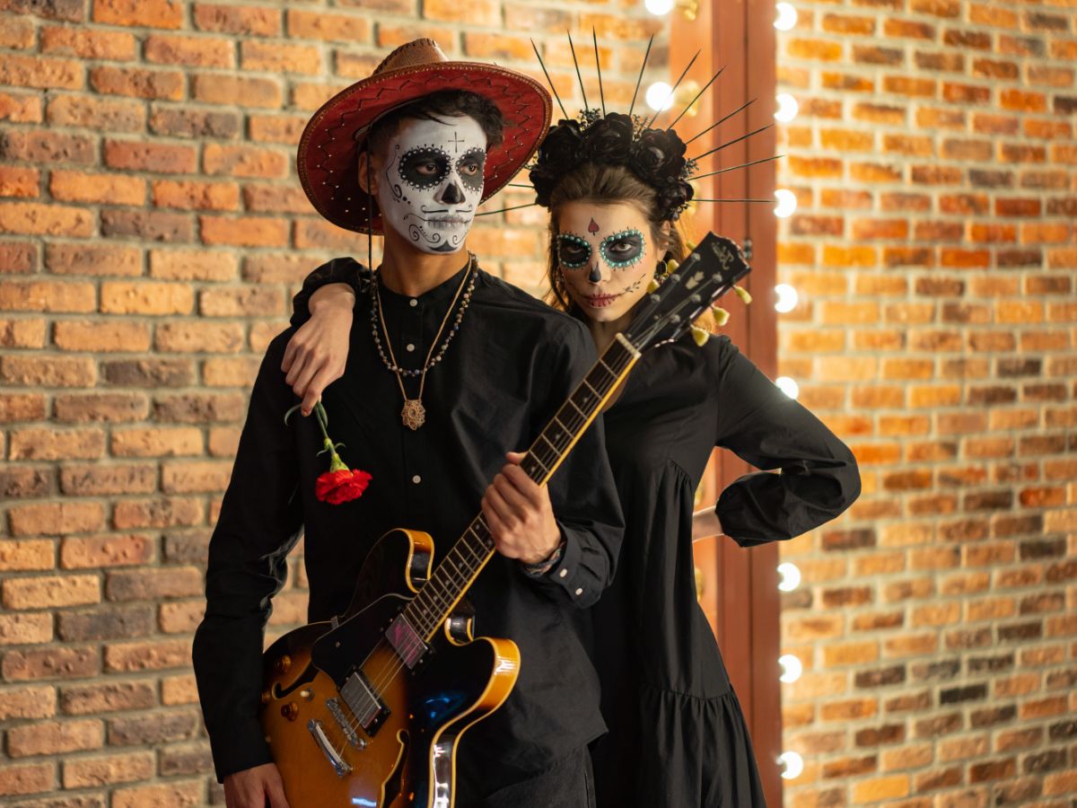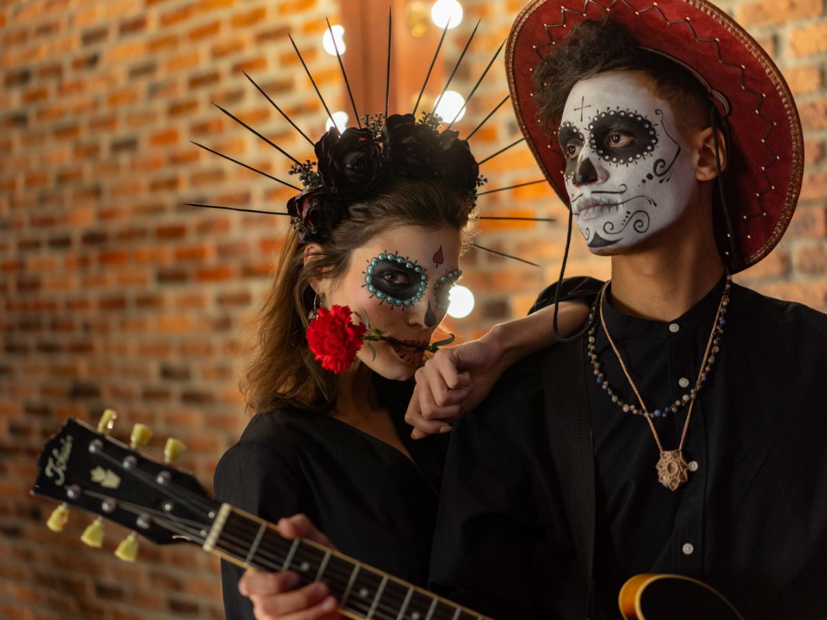Día de Los Muertos is a holiday that involves family and friends gathering to pay respects and remember friends and family members who have died. This couple in love is not an exception.
